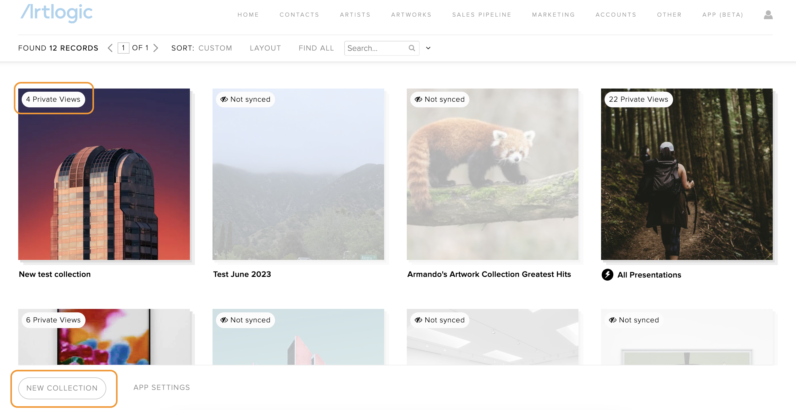 To create collections in the new app you are able to do this from within your database. Navigate to Artworks > Private Views > Collections Management.