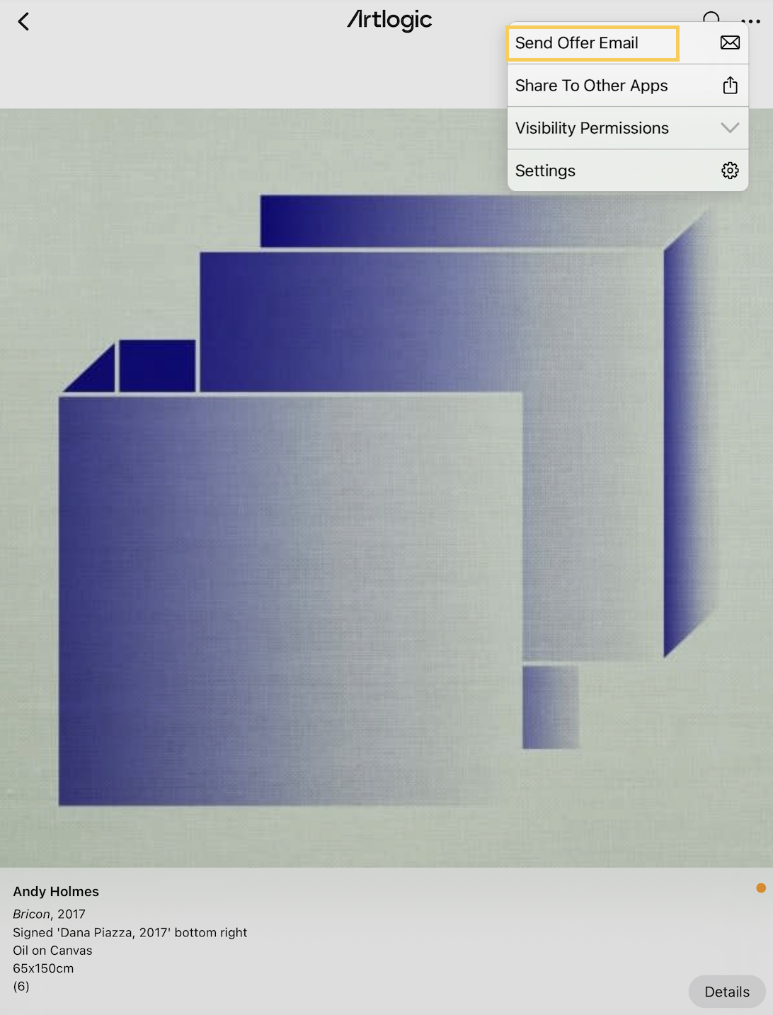 - Select your chosen artwork(s) and click the ellipsis button and select Send Offer Email.