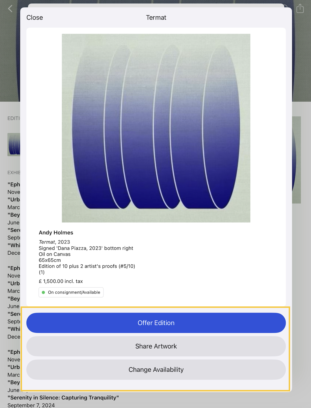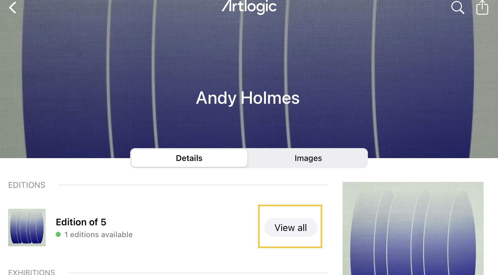 - Look for artworks with the (E) symbol on the main screen — this indicates they have editions.