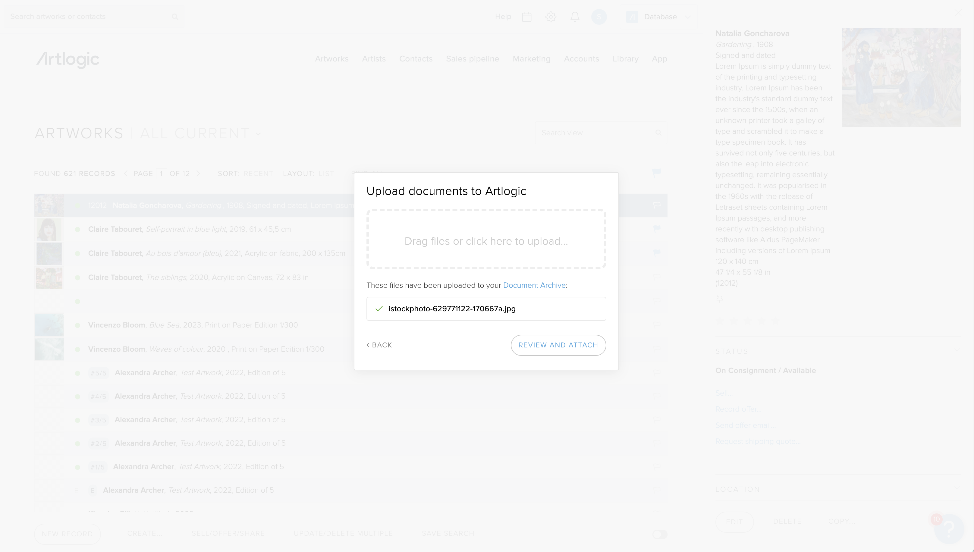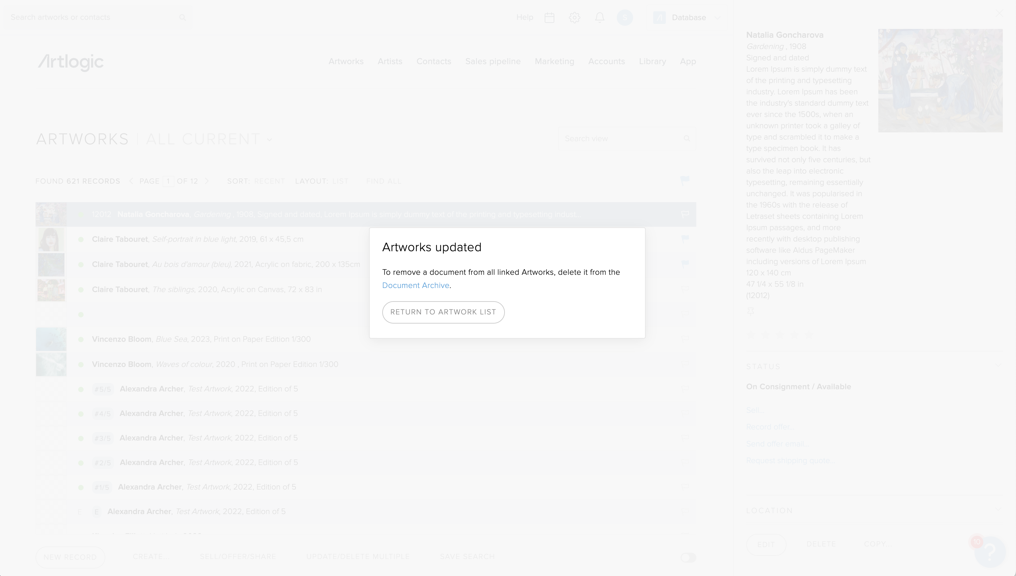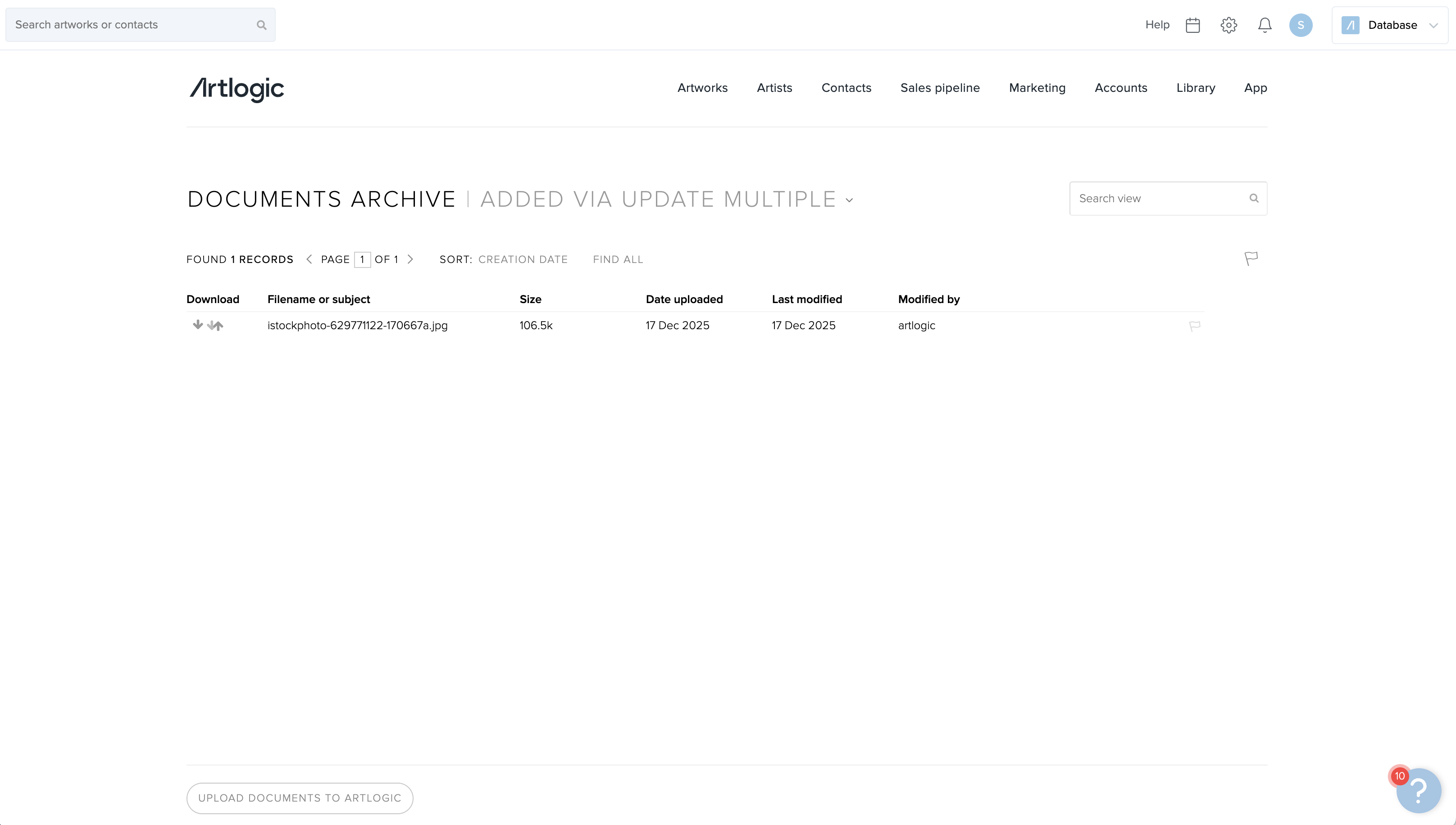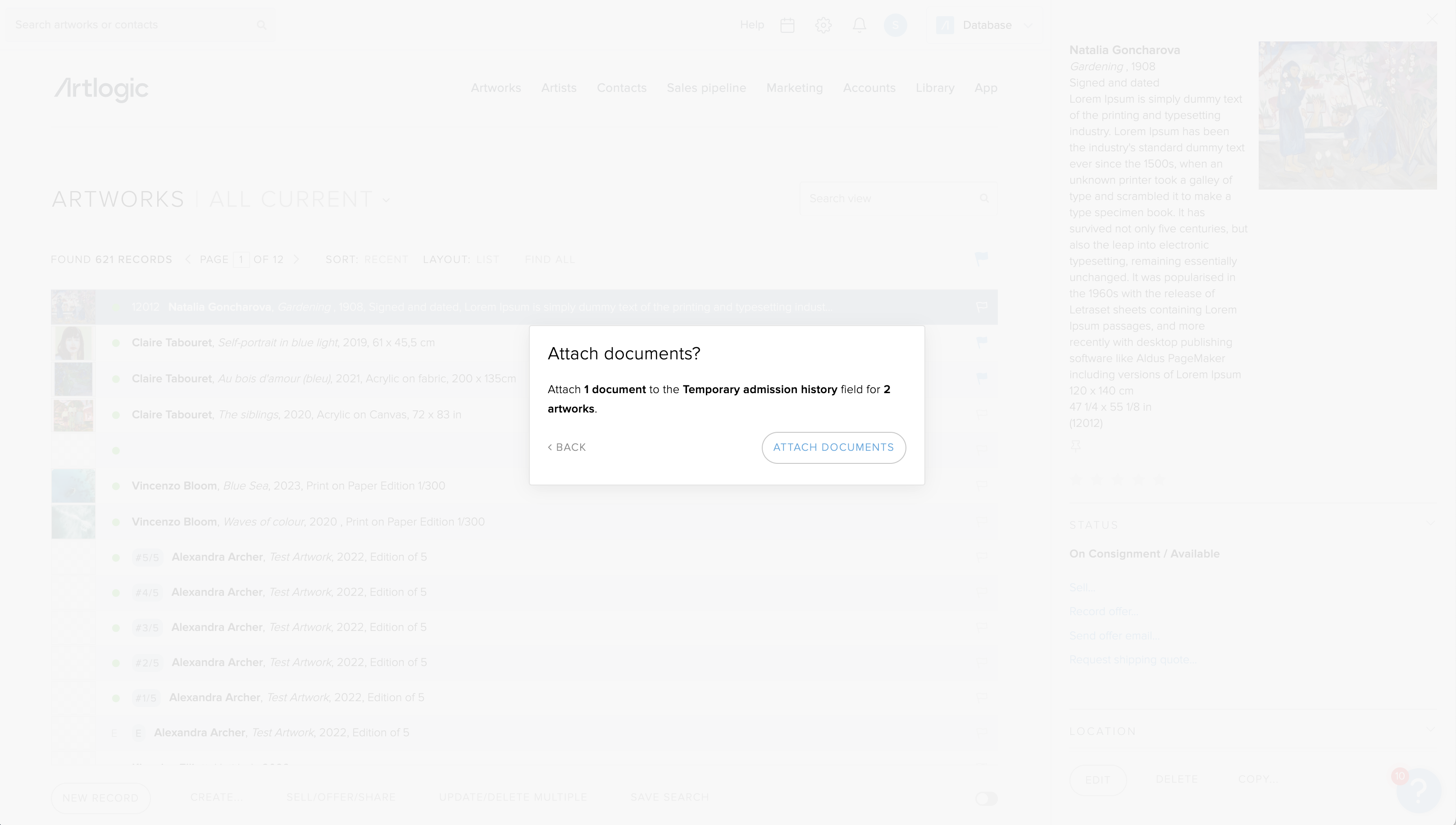 From the Artworks list screen, find or flag the artworks you want to attach the document to.