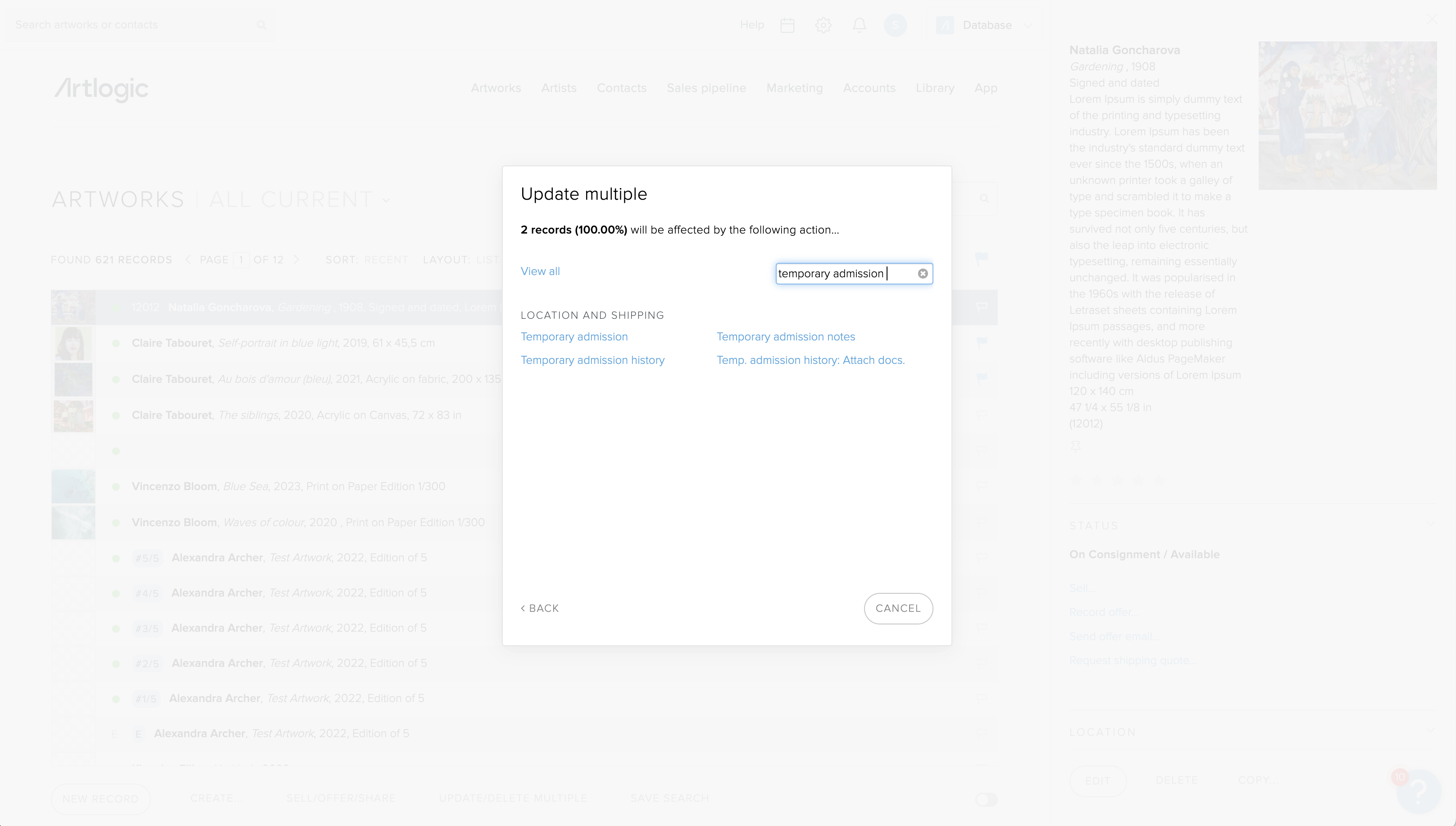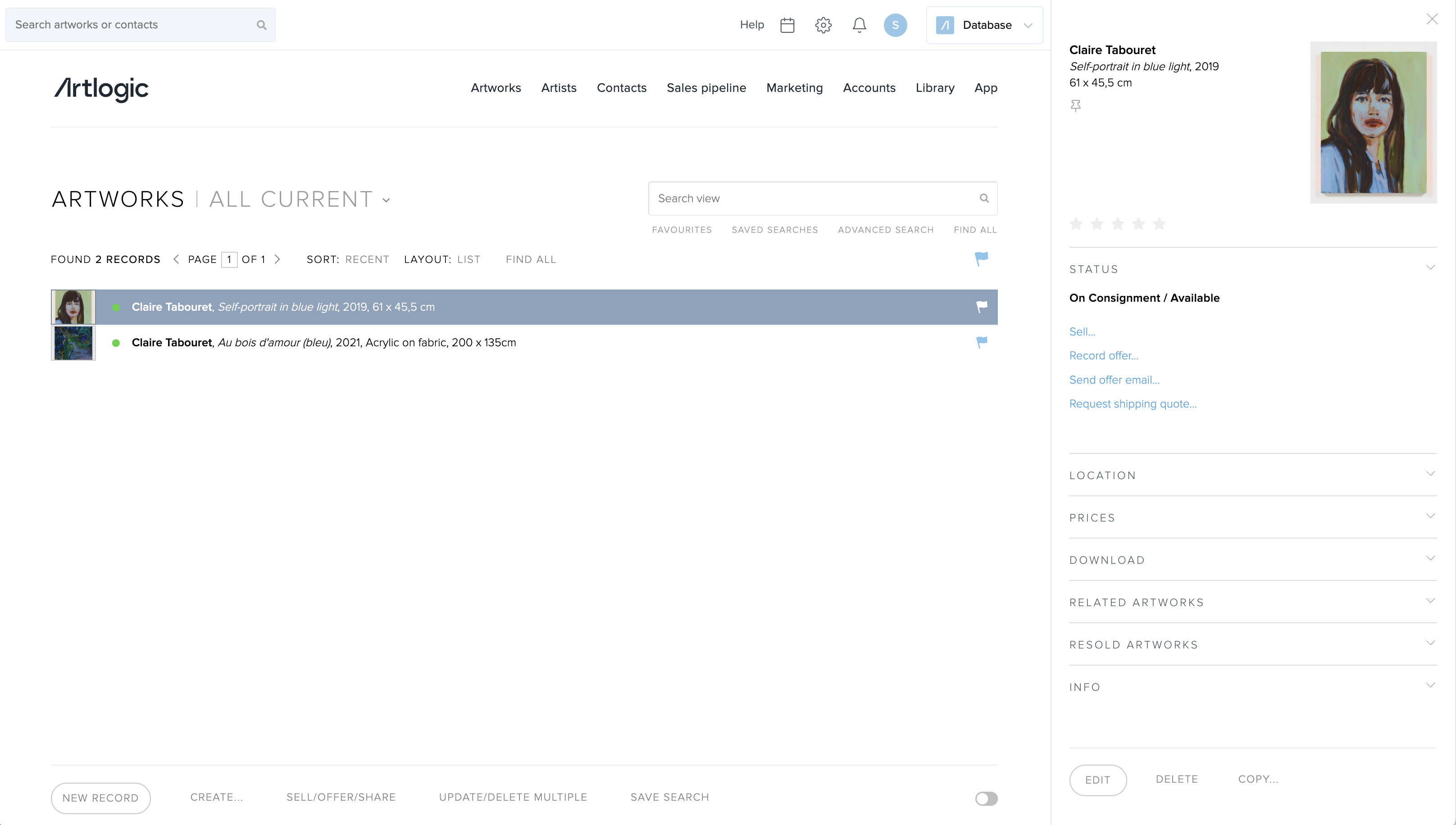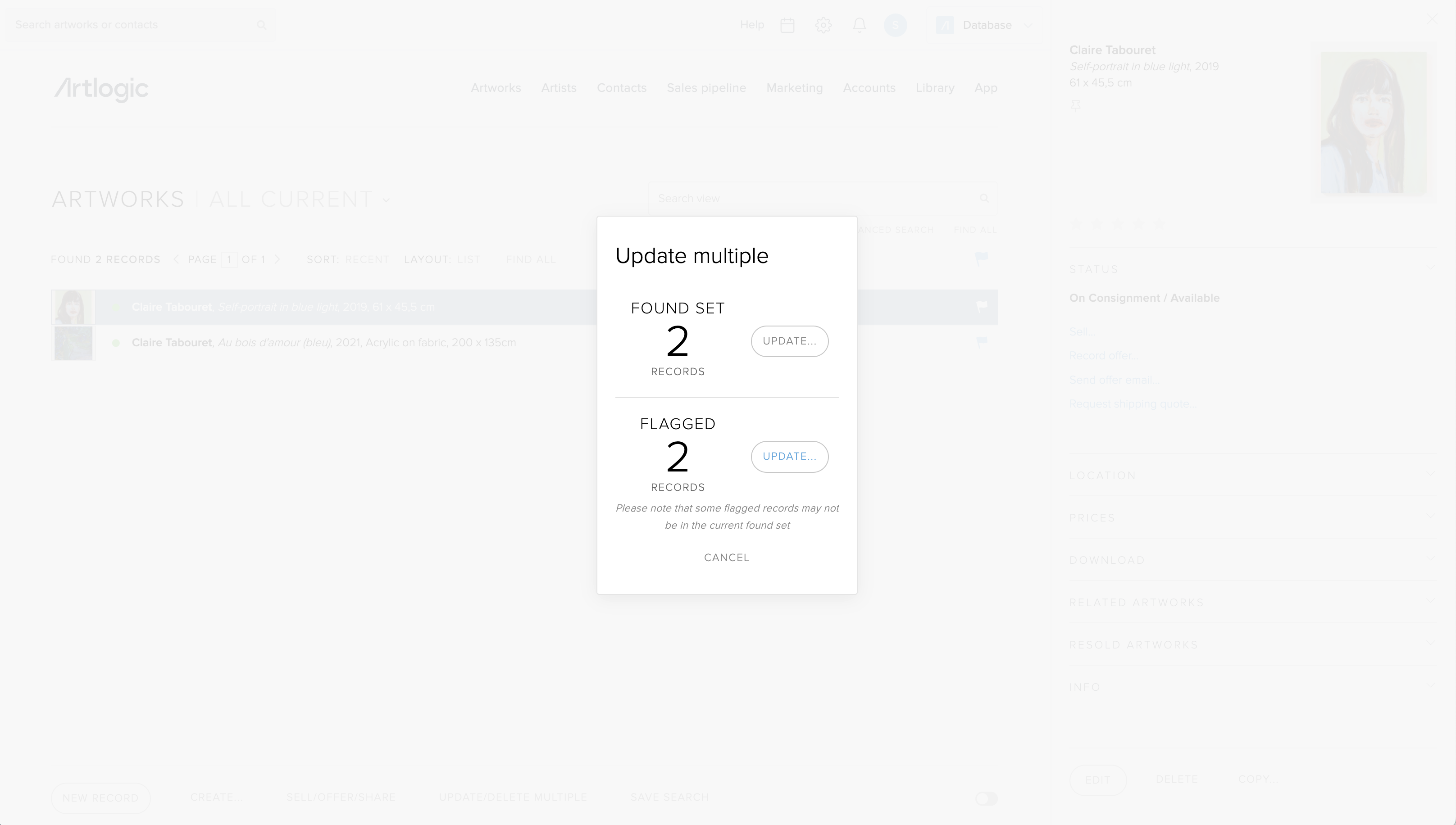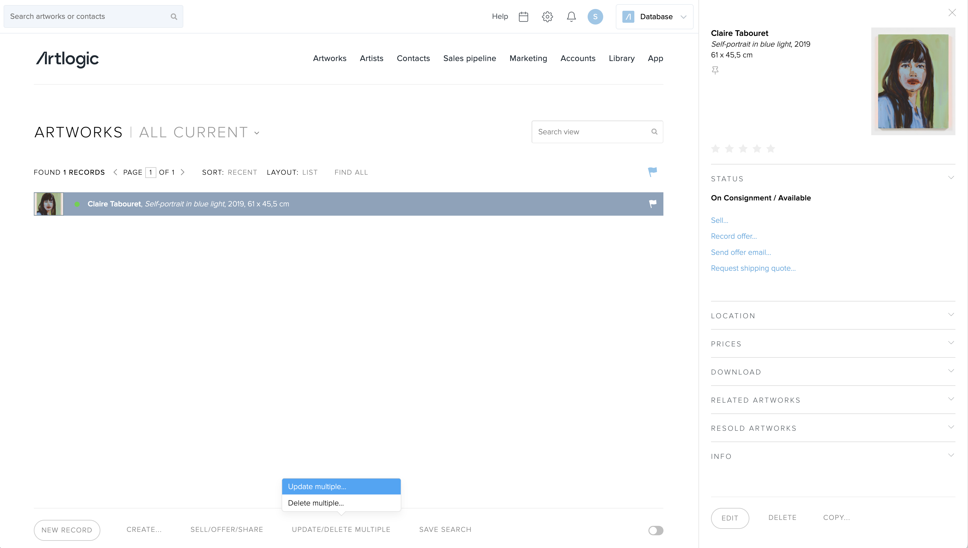 From the Artworks list screen, find or flag the artworks you want to attach the document to.