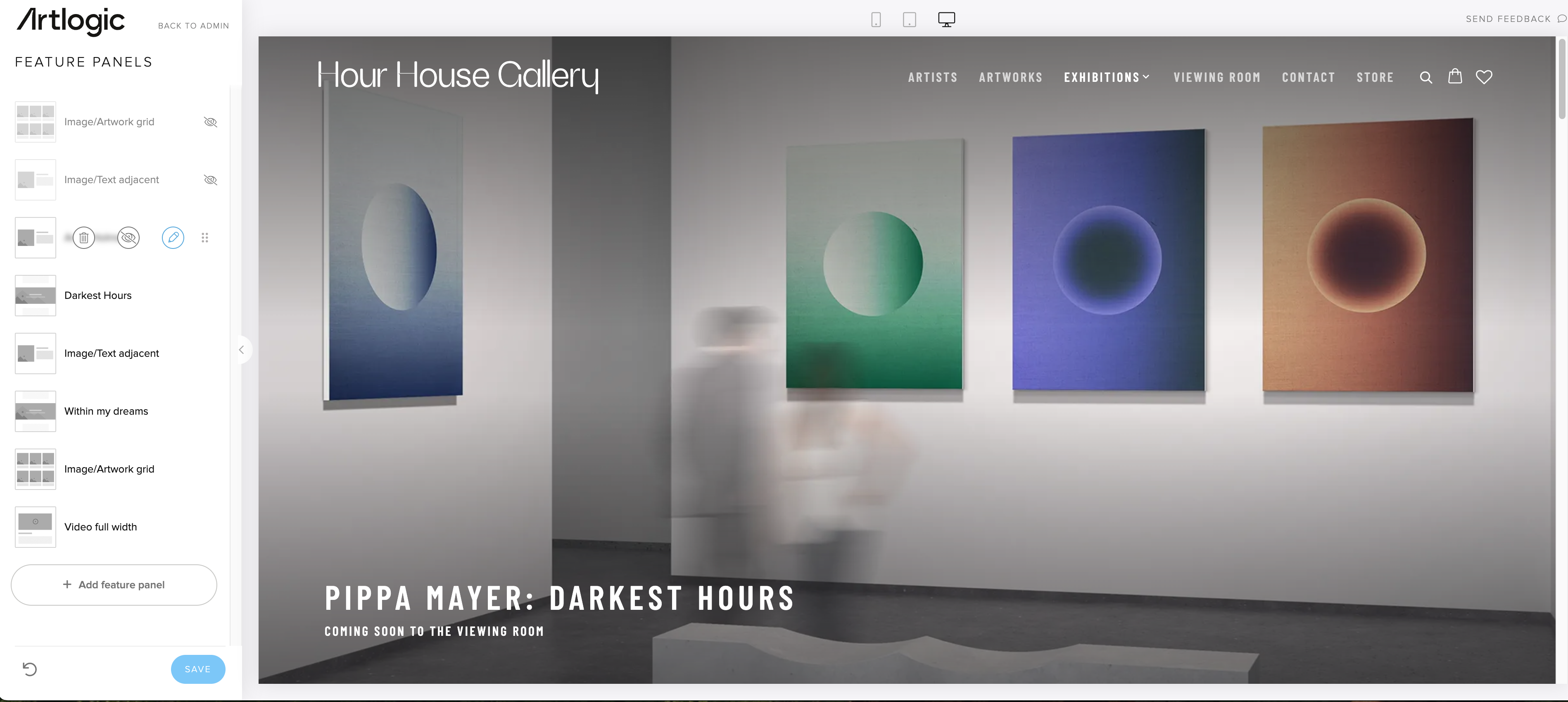 Create and edit feature panels dynamically from the front end of your website. You can access it on any viewing room or page that supports feature panels. A great way to design your website with greater control.