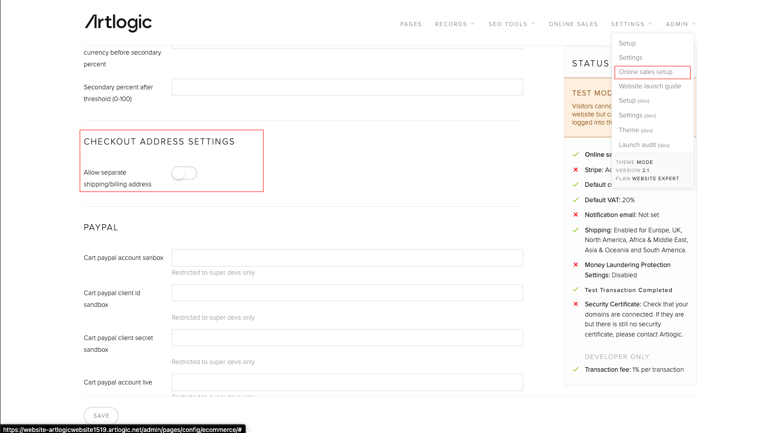 Moved online sales settings into the Online Sales Hub under payment and shipping, making them easier to access and manage.